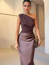 Das Satin-Maxikleid mit einem Schulterträger verkörpert die Essenz raffinierter Eleganz mit einem modernen Touch. Sein schlankes, asymmetrisches Design und die fließende Satinoberfläche schaffen eine makellose Silhouette, die Selbstvertrauen und Charme ausstrahlt. Leicht und anmutig, ist dieses Kleid perfekt für Abendpartys, Hochzeiten oder alle Anlässe, bei denen Sie einen bleibenden Eindruck hinterlassen möchten.